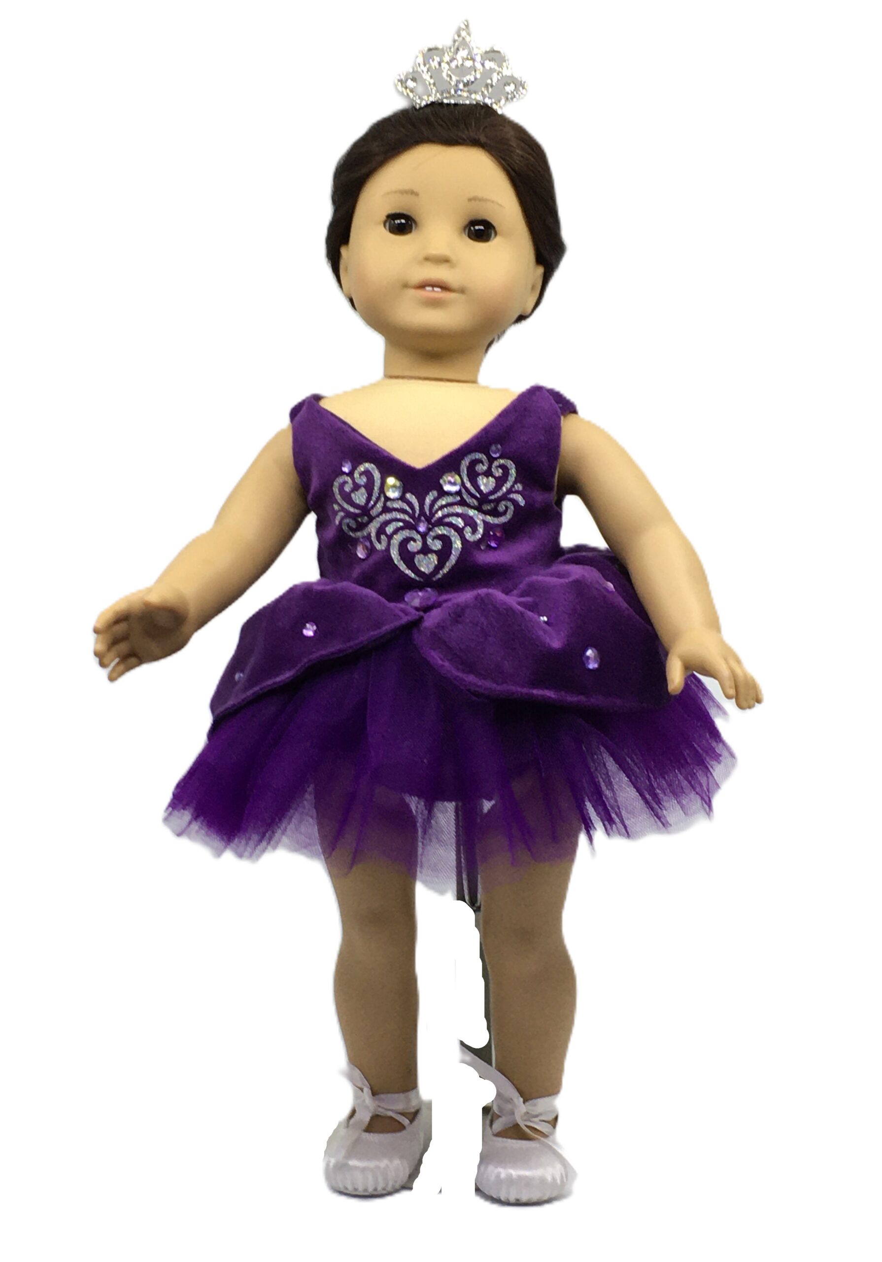 Another Christmastime ballet favorite! Our Sugarplum fairy features a purple velveteen tutu with layers of matching tulle, a silver sparkle design, and rhinestone embellishments. Matching purple dance pants, silver toe shoes, and a rhinestone tiara are included.